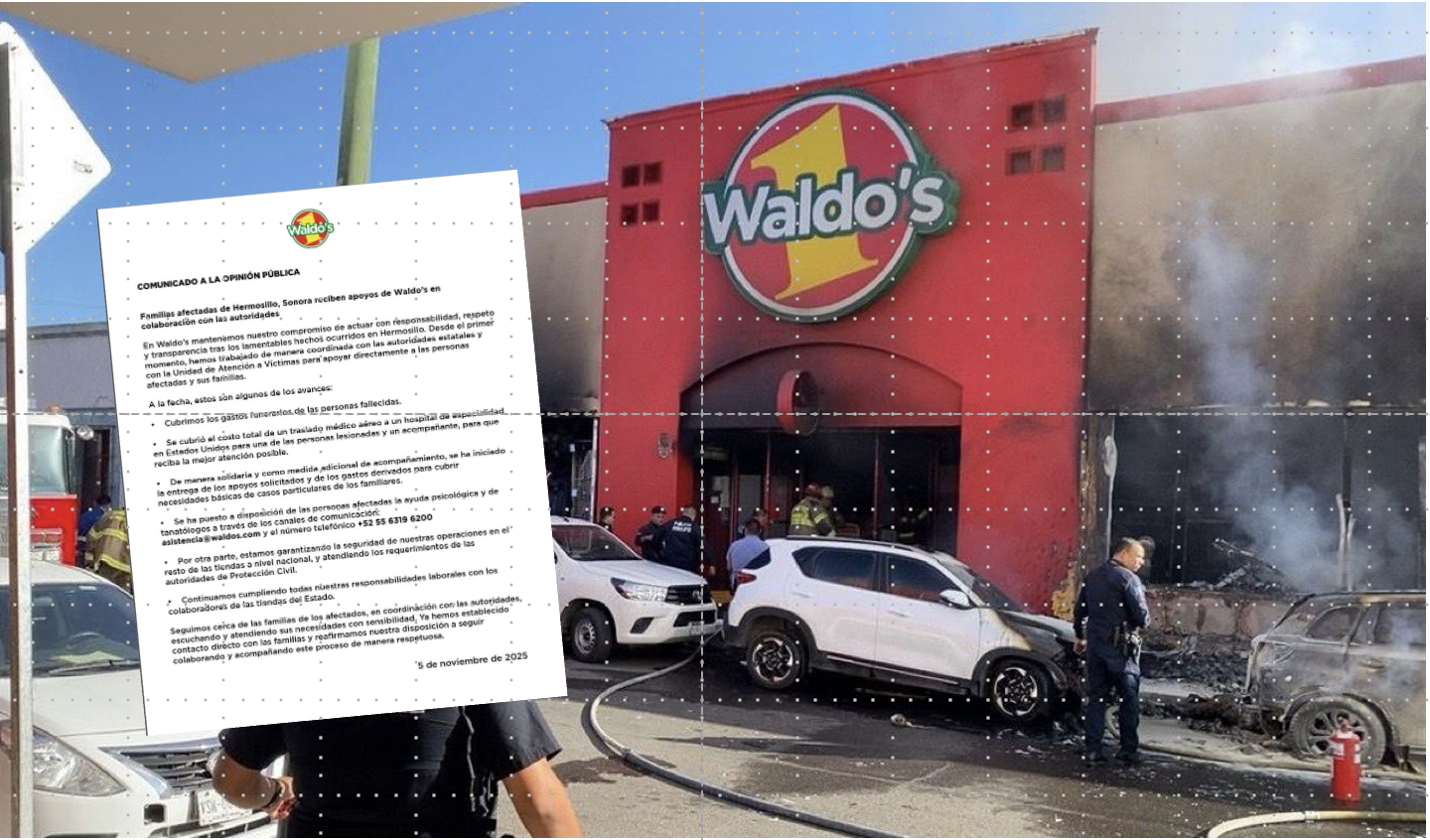 La empresa comercial Waldo's retiera su compomiso de actuar con responsabilidad, respeto y transparencia tras el lamentable incendio ocurrido en Hermosillo, Sonora, en el que perdieron la vida 23 personas y 12 más resultaron lesionadas.